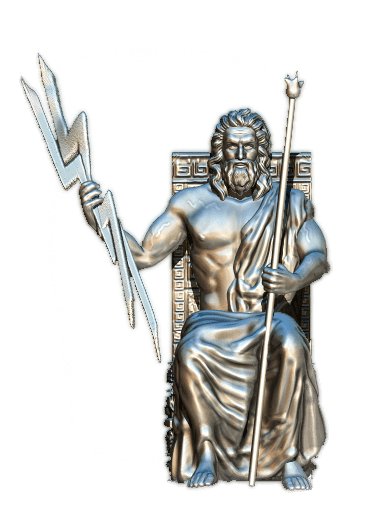 Zeus is the father of Gods and king of all Gods in the Greek mythology.